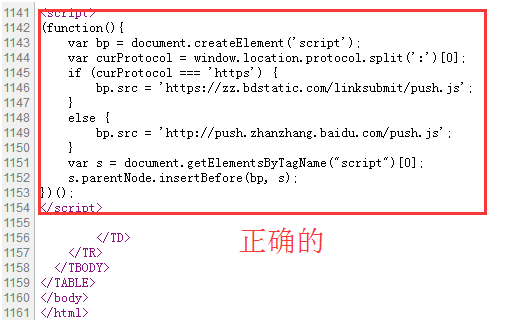 第三点网站的源代码部分里面出现了两个百度推送代码,这样是没有作用的而且有一个加着不正确所以我们选择把上面的删除掉精简代码。